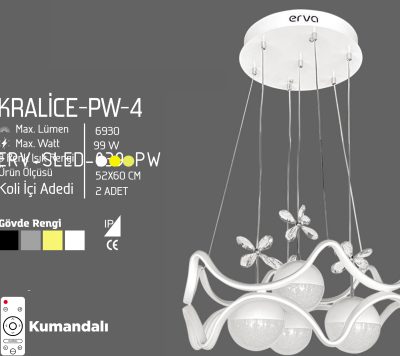 Erva Ledli Avize Papatya Gümüş Plafonyer Power